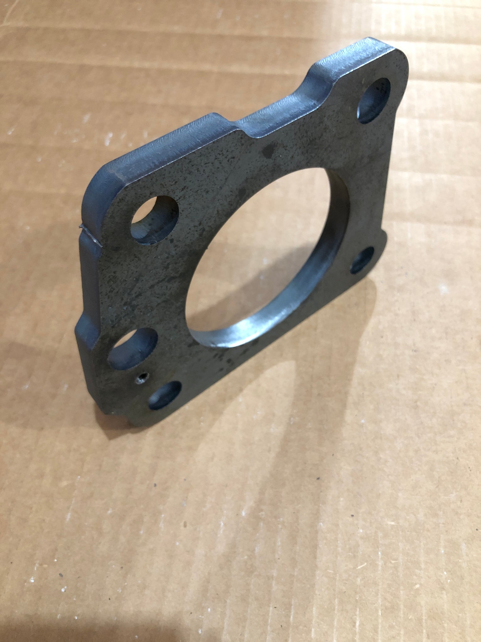 - Trapezoidal shape (relieved material between bolt holes to save weight)